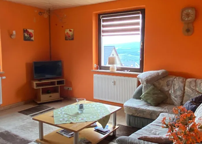 Die 75 m² große Ferienwohnung am Balkon des Erzgebirges Bernsbach in Bernsbach befindet sich ungefähr 10 Minuten Autofahrt vom Schloss Schwarzenberg und ca. 2 Kilometer von der Fuchsbrunnenbrücke entfernt. Das 1-Zimmer-Apartment verfügt über eine Terrasse mit einem Blick auf die Berge.